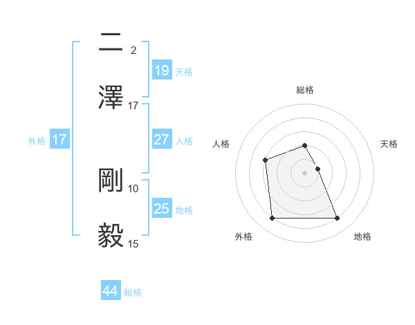 二澤 剛毅さんを姓名の画数から五運を鑑定