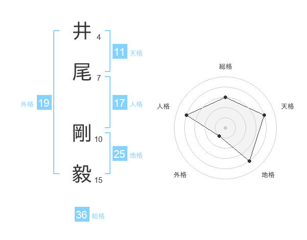 井尾 剛毅さんを姓名の画数から五運を鑑定