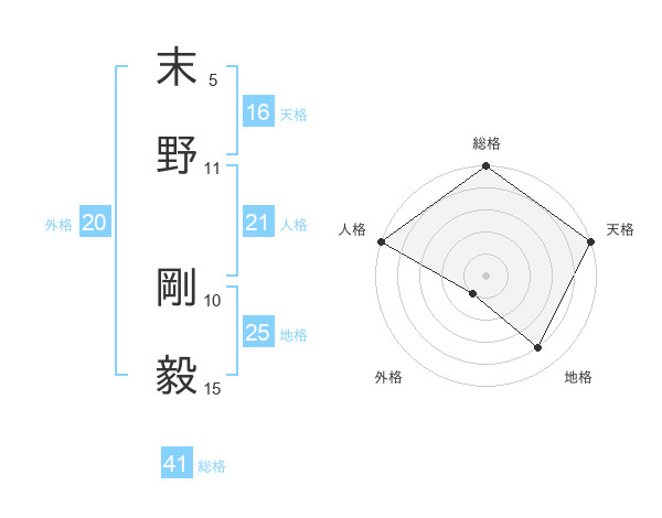 末野 剛毅さんを姓名の画数から五運を鑑定