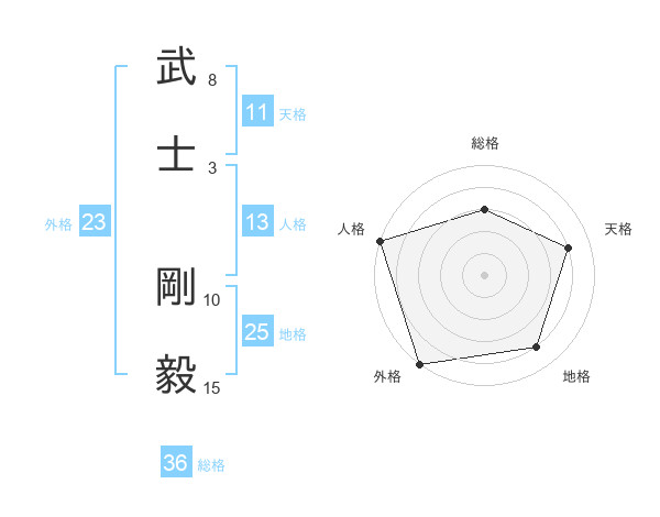 武士 剛毅さんを姓名の画数から五運を鑑定