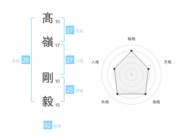 髙嶺 剛毅さんの総格は52画の4点!
