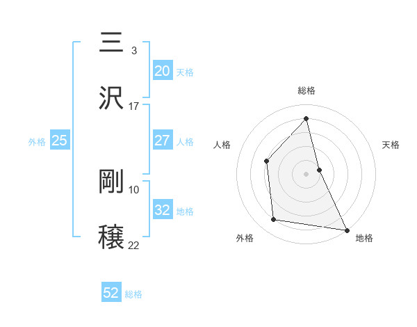 三沢 剛穣さんを姓名の画数から五運を鑑定