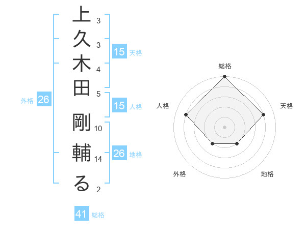 上久木田 剛輔るさんを姓名の画数から五運を鑑定