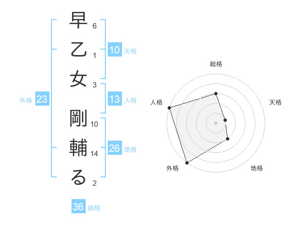 早乙女 剛輔るさんの地格は26画の2点!
