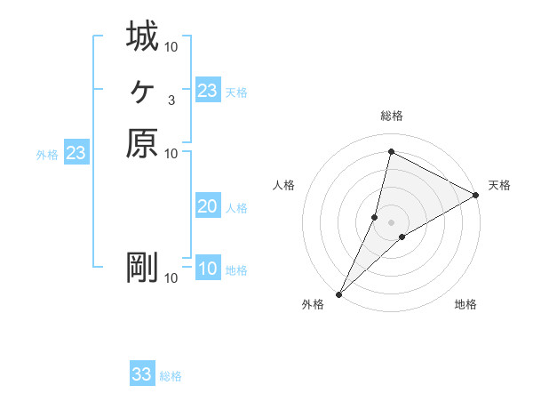 城ヶ原 剛さんの総格は33画の4点!