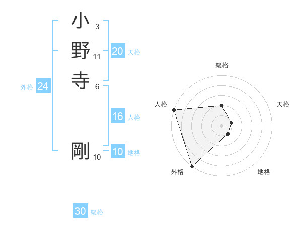 小野寺 剛さんを姓名の画数から五運を鑑定