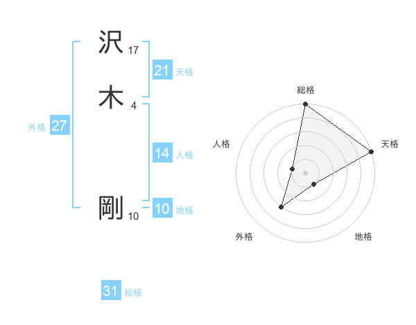 沢木 剛さんの総格は31画の5点!