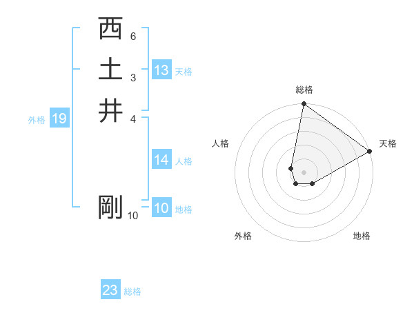 西土井 剛さんの総格は23画の5点!