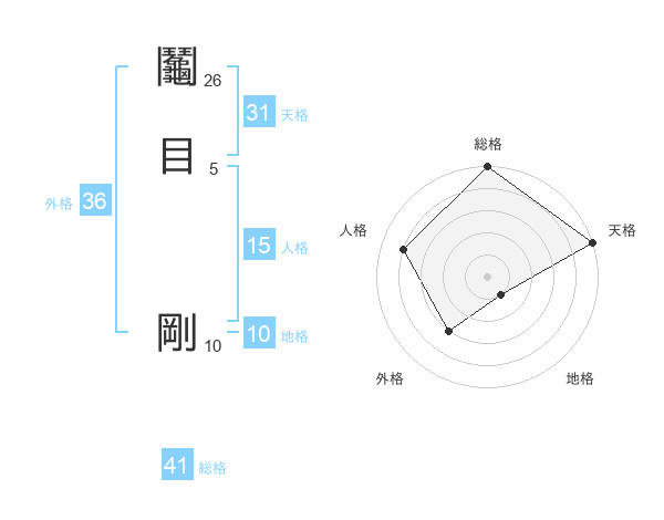 鬮目 剛さんの天格は31画の5点!
