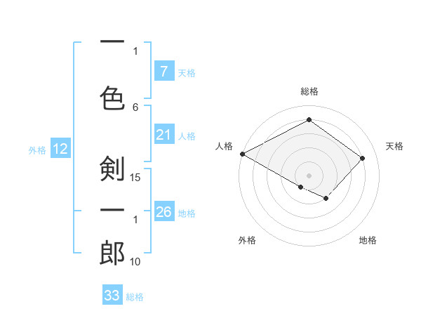 一色 剣一郎さんを姓名の画数から五運を鑑定