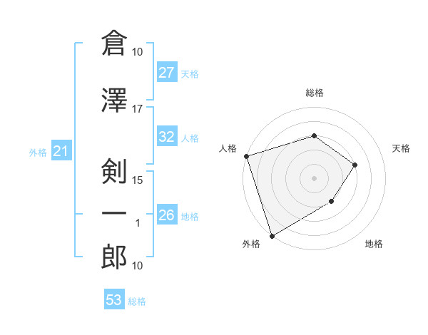 倉澤 剣一郎さんを姓名の画数から五運を鑑定