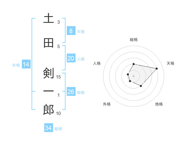 土田 剣一郎さんを姓名の画数から五運を鑑定