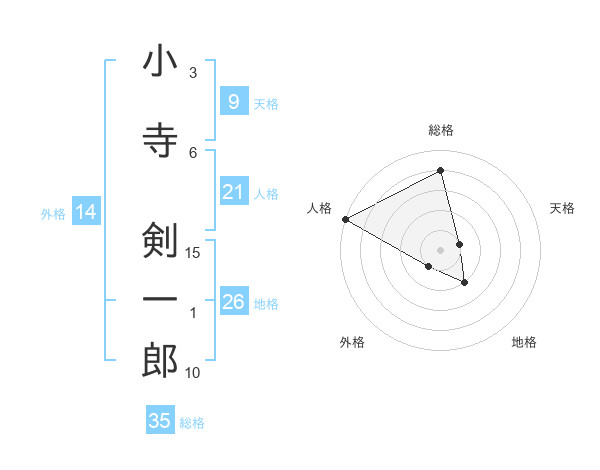 小寺 剣一郎さんを姓名の画数から五運を鑑定
