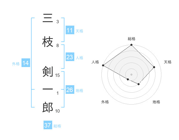 三枝 剣一郎さんを姓名の画数から五運を鑑定