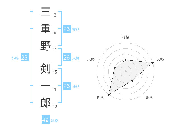 三重野 剣一郎さんを姓名の画数から五運を鑑定