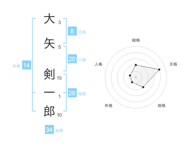 大矢 剣一郎さんを姓名の画数から五運を鑑定