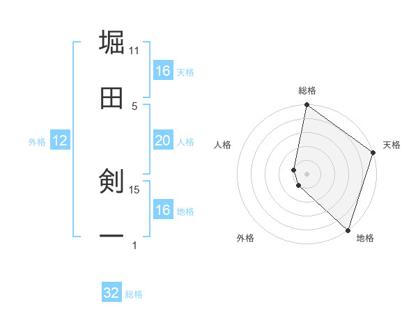 堀田 剣一さんを姓名の画数から五運を鑑定