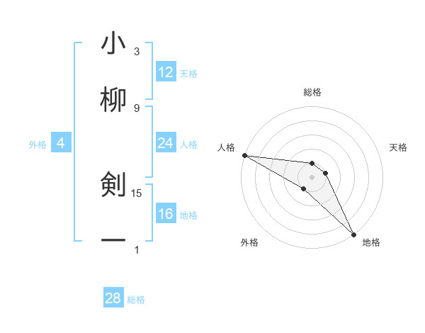 小柳 剣一さんの総格は28画の1点!