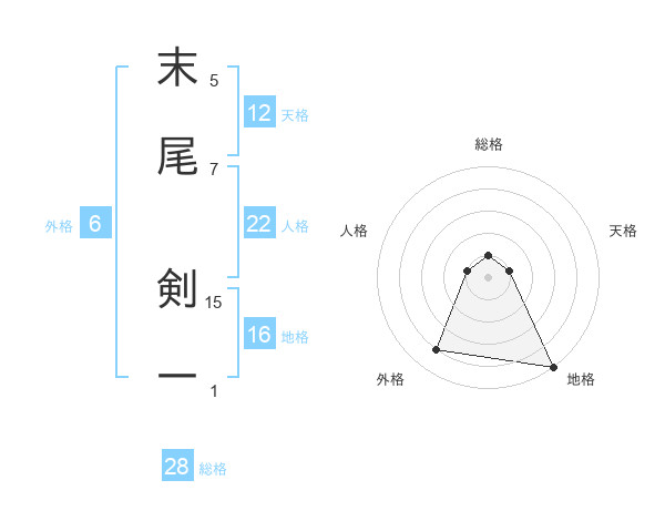 末尾 剣一さんの地格は16画の5点!