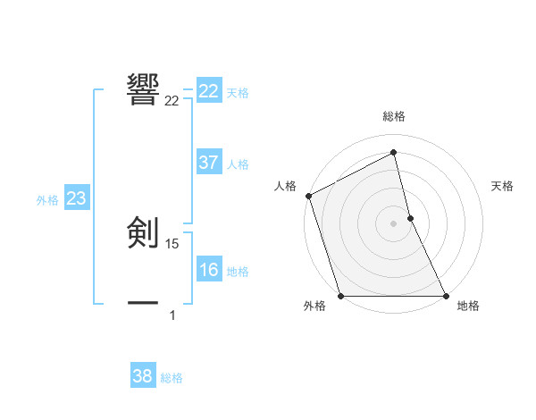 響 剣一さんの外格は23画の5点!