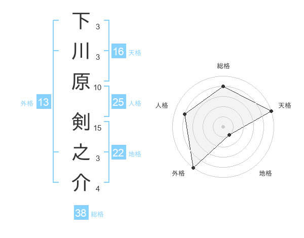 下川原 剣之介さんを姓名の画数から五運を鑑定