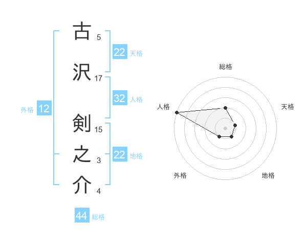 古沢 剣之介さんを姓名の画数から五運を鑑定