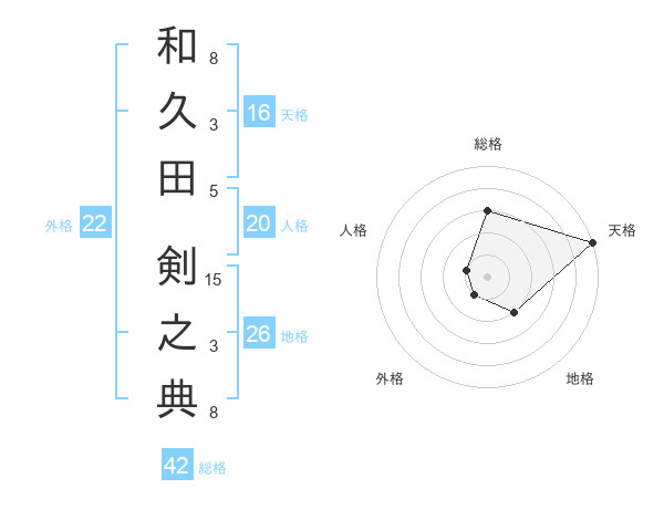 和久田 剣之典さんの総格は42画の3点!
