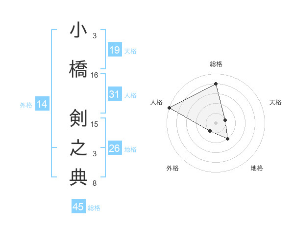 小橋 剣之典さんを姓名の画数から五運を鑑定