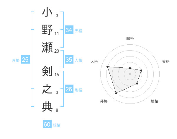 小野瀬 剣之典さんを姓名の画数から五運を鑑定