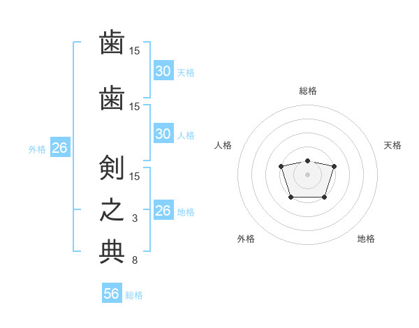 歯歯 剣之典さんを姓名の画数から五運を鑑定