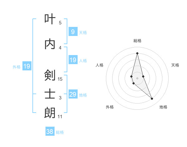 叶内 剣士朗さんを姓名の画数から五運を鑑定