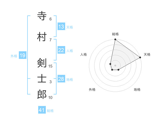寺村 剣士郎さんの天格は13画の5点!