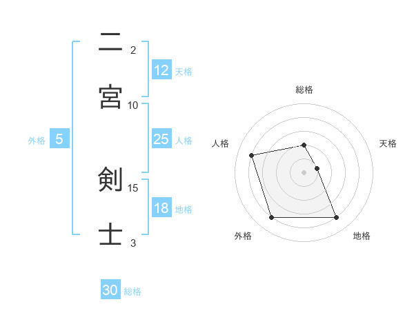 二宮 剣士さんの総格は30画の2点!