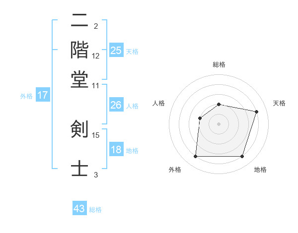 二階堂 剣士さんを姓名の画数から五運を鑑定