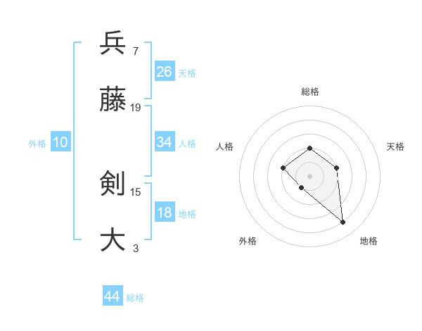 兵藤 剣大さんを姓名の画数から五運を鑑定