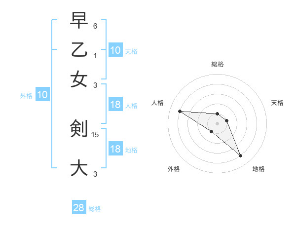 早乙女 剣大さんの天格は10画の1点!