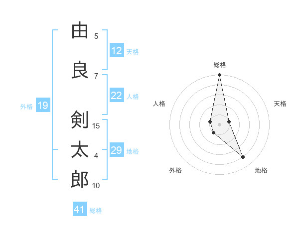 由良 剣太郎さんの総格は41画の5点!