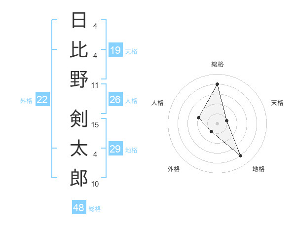日比野 剣太郎さんの総格は48画の4点!