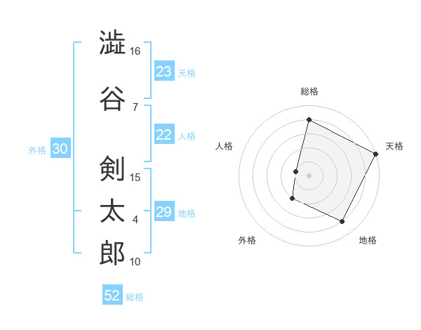 澁谷 剣太郎さんの天格は23画の5点!