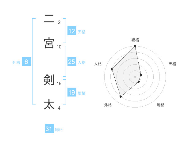 二宮 剣太さんを姓名の画数から五運を鑑定