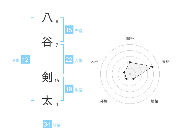 八谷 剣太さんを姓名の画数から五運を鑑定