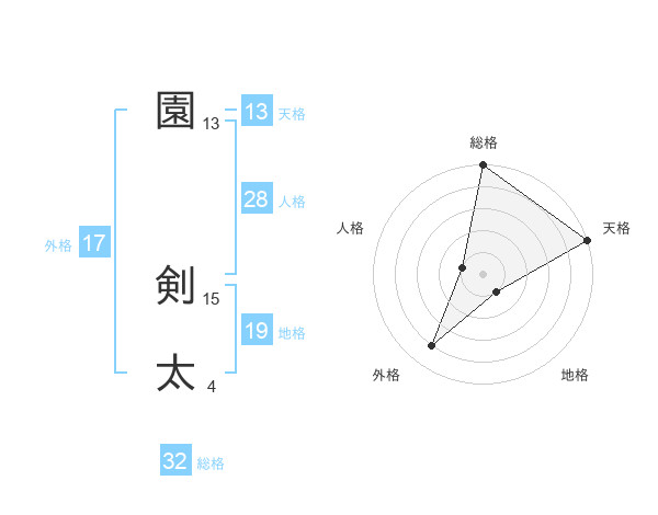 園 剣太さんの外格は17画の4点!