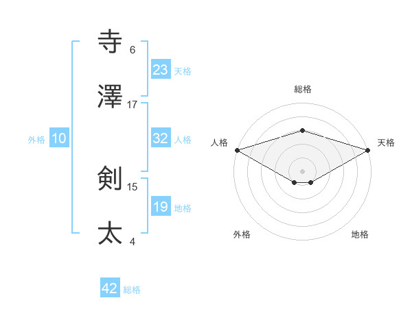 寺澤 剣太さんの総格は42画の3点!