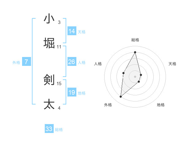 小堀 剣太さんの天格は14画の1点!
