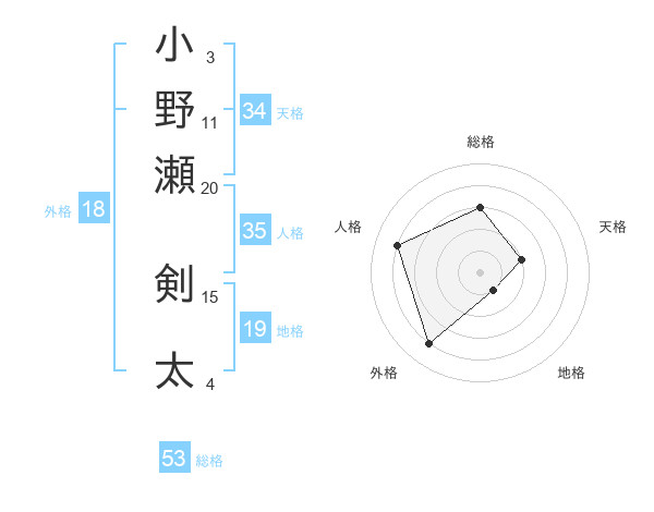 小野瀬 剣太さんを姓名の画数から五運を鑑定