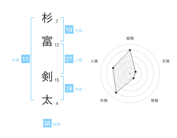 杉富 剣太さんを姓名の画数から五運を鑑定