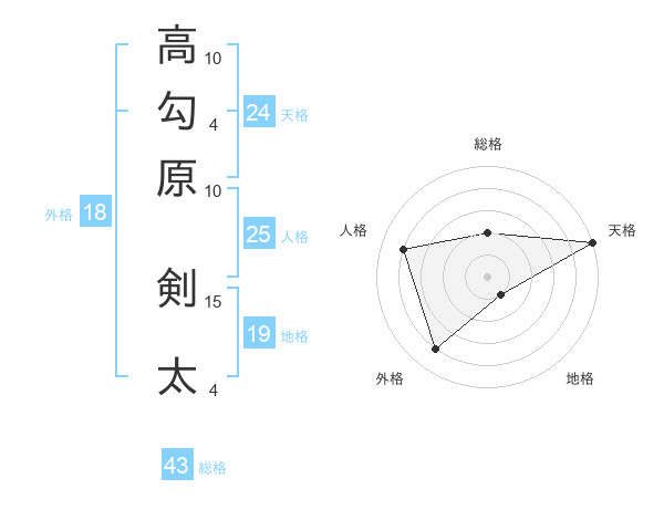 高勾原 剣太さんの天格は24画の5点!