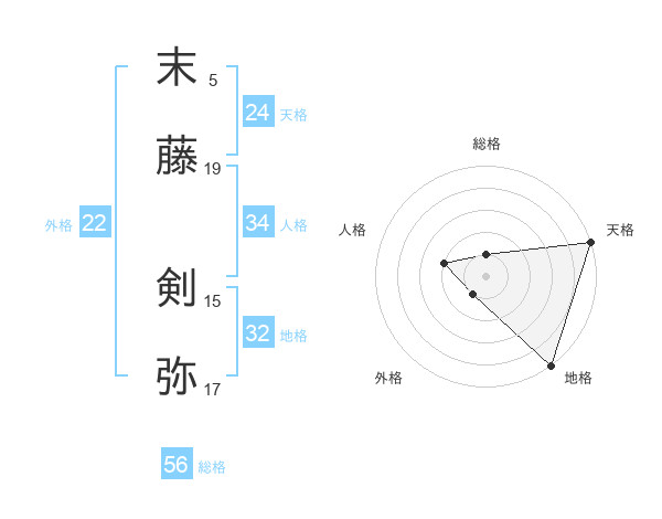 末藤 剣弥さんを姓名の画数から五運を鑑定