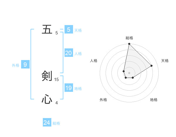 五 剣心さんの総格は24画の5点!