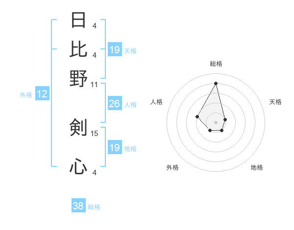 日比野 剣心さんの総格は38画の4点!